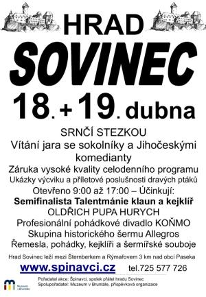 O víkendu 11. a 12. dubna 2026 pořádá hrad Sovinec akci s názvem Hradobraní. Přijďte na divadlo s dětmi, podrobný program najdete na přiloženém plakátu.