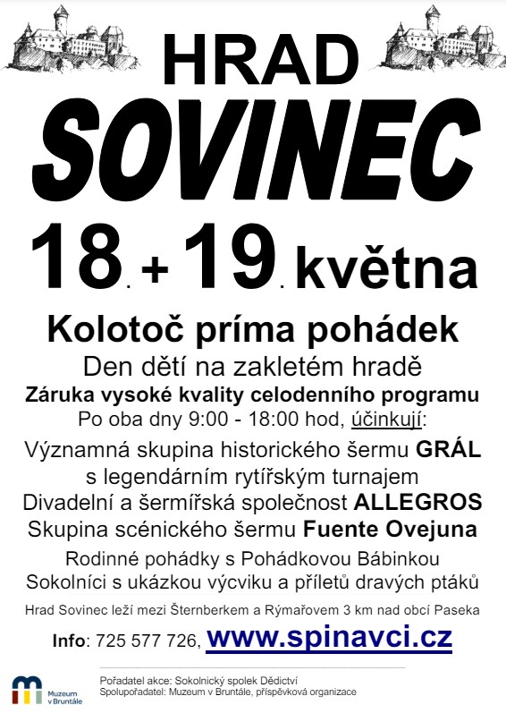 O víkendu 18. a 19. května se uskuteční akce pro děti Kolotoč príma pohádek aneb Den dětí na zakletém hradě. Své umění šermířské, bubenické a komediální předvede brněnská Skupina historického šermu Grál, chybět nebude ani sokolník nebo pohádky pro nejmenší.