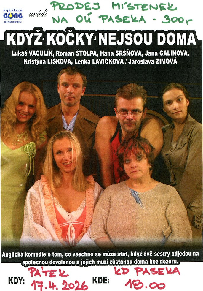 Máte-li zájem, ale nejste z Paseky nebo nemáte možnost se zastavit, je možné se dohodnout telefonicky (732 524 991 - volejte až po 13.hodině) nebo mailem (Komise700@seznam.cz) na rezervaci. Lístky si budete moci zaplatit QRkodem a budou na Vás čekat před představením. Cena 300 Kč.