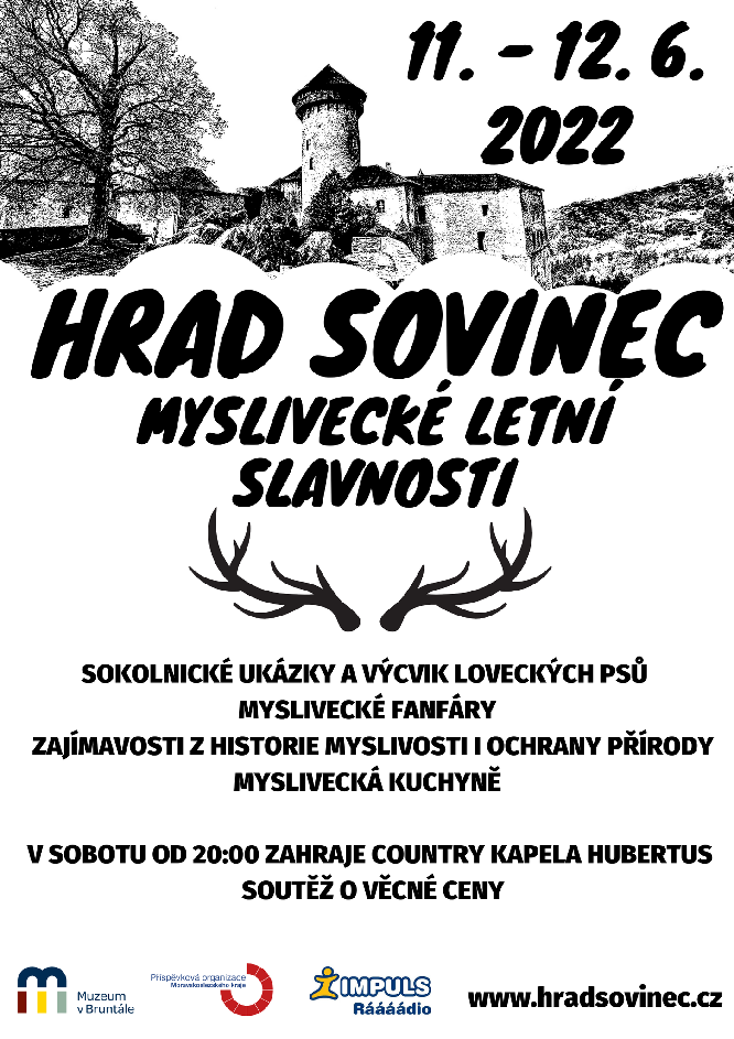 Kromě bohatého kulturního programu po oba dny, také v sobotu večer na hradě Sovinci zahraje country kabelka Hubertus a bude tombola o věcné ceny.