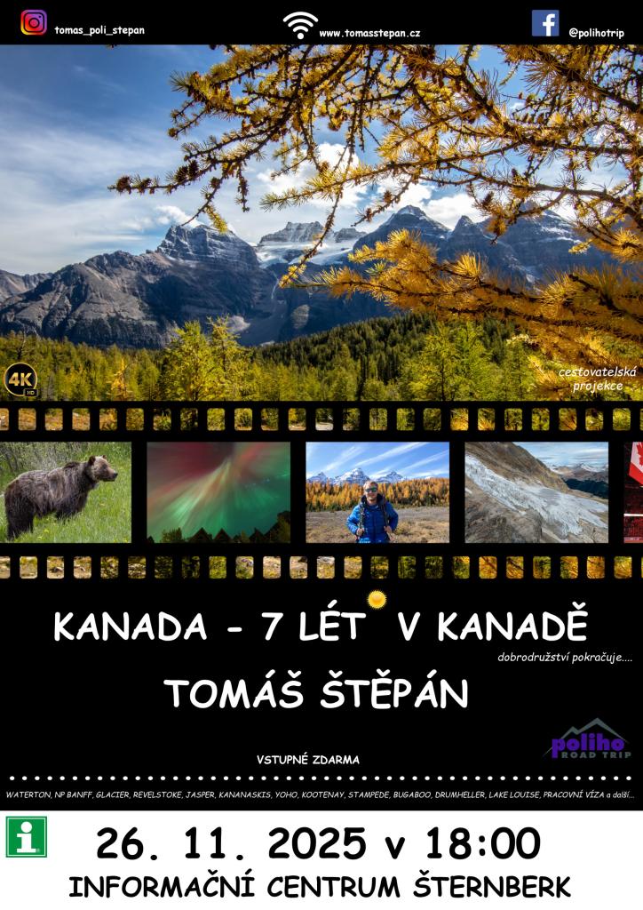 Jak funguje kanadské zdravotnictví, školství a jaká je aktuální ekonomická situace? Vyrazte se mnou na ryby, lov divoké zvěře, či jen tak vandrovat do Skalistých hor. Vychutnejte si povídání o kanadské divočině, národních parcích, ledovcích, řekách, polárních zářích a nechte se zlákat na případnou návštěvu této okouzlující země.