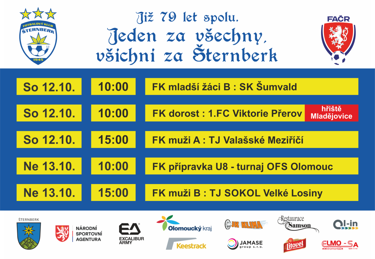 Přinášíme vám přehled nadcházejících utkání fotbalového klubu Šternberk.