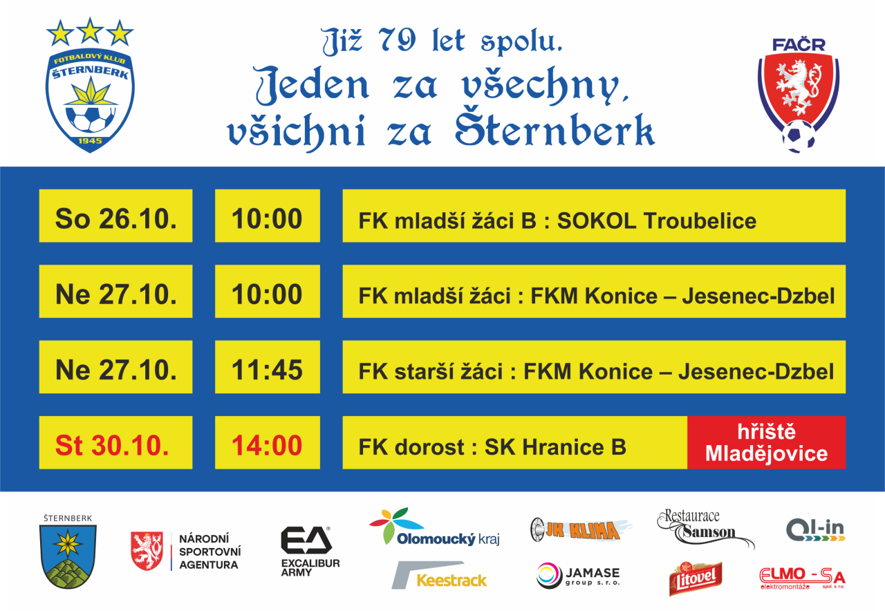 Přinášíme vám přehled nadcházejících utkání fotbalového klubu Šternberk.