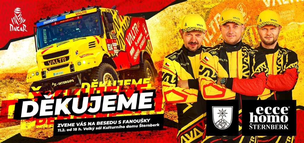 AMK Ecce Homo Šternberk zve všechny zájemce na přednášku s názvem Dakar 2026. Čeká na vás povídání o tomto fenomenálním rallye závodě, záběry z Dakaru a mnoho dalšího. Přednášet budou členové závodního týmu "Valtři". Vstupné je zdarma.